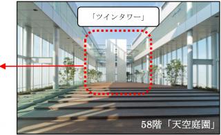(4)場 所:「ハルカス300」58階天空庭園(ツインタワーのすき間に設置)