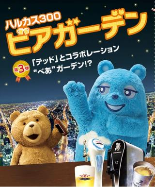 「ハルカス300 ビアガーデン」は、平成27年5月28日(木)から9月23日(水・祝)までの約4ヶ月間にわたり、天空庭園(58階)にて開催しておりますが、第3期は、8月28日公開の映画『テッド2』とコラボレーションをいたします!