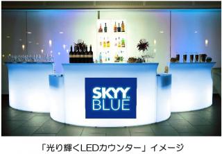 期間中はLEDが鮮やかに輝く「SKYY BLUEの光輝くバーカウンター・チェア」が登場します。「光輝くバーカウンター」では、「SKYY BLUE」と「SKYY VODKA」を使用した数量限定のオリジナルドリンクを販売します。